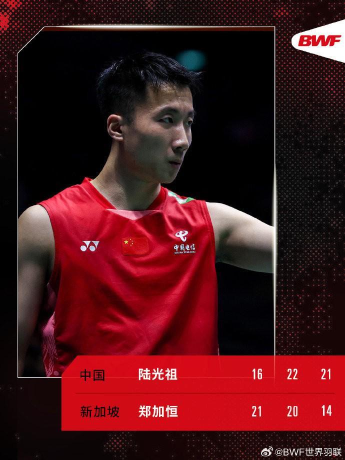 另一位中国选手陆光祖挽救赛点,以2-1(16-21、22-20、21-14)逆转郑加恒,晋级男单32强,收获首次交手胜利。下一轮,遭遇加拿大选手赖浩俊。